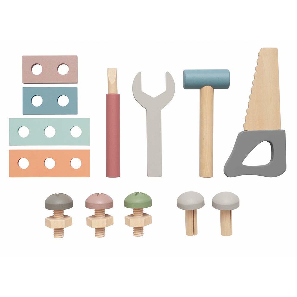 Küçük marangozlar için harika bir hediye! Tamamen ahşaptan üretilmiş bu alet kutusu, bir marangozun ihtiyaç duyabileceği her şeyi barındıran 15 parçadan oluşur. Alet kutusu, eğlenceli ve yaratıcı bir oyun sunarken çocuğunuzun renkler ve şekiller hakkında bilgi edinmesine yardımcı olur.