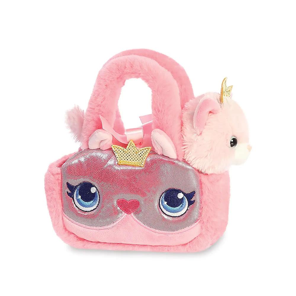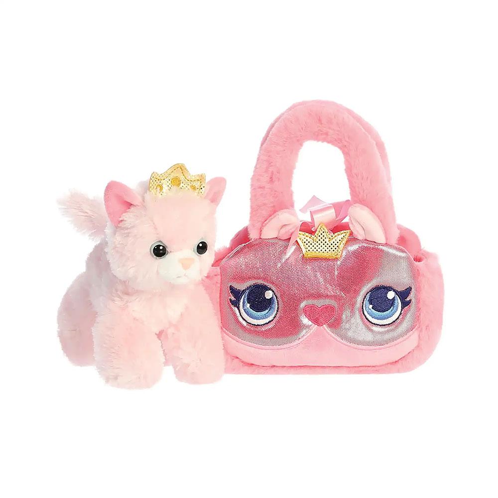 Fancy Pals Prenses Kedi peluş oyuncağıyla tanışın! Sarı bir taç takan bu sevimli kedi, şirin taşıma çantasının içinde oturur. Kedileri seven herkes için mükemmel bir hediyedir! En güzel yanı, kedinin çantaya bağlı olmaması, böylece iki hediye bir arada sunulur – bir el çantası ve bir peluş oyuncak!