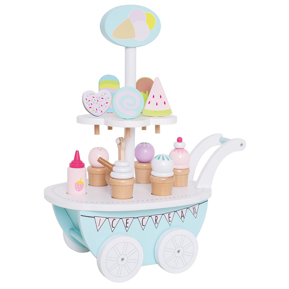 Hayali oyunlar bundan daha tatlı olamaz! Muhteşem dondurma arabasıyla kendi dondurma standınızı açmaya hazırsınız.  Stand, 10 farklı dondurma, dondurma külahı ve çilek sosuyla birlikte gelir. Hayal gücünü ve rol yapma oyunlarını teşvik eder. Dondurma arabası tekerleklidir, böylece etrafta sürülebilir.